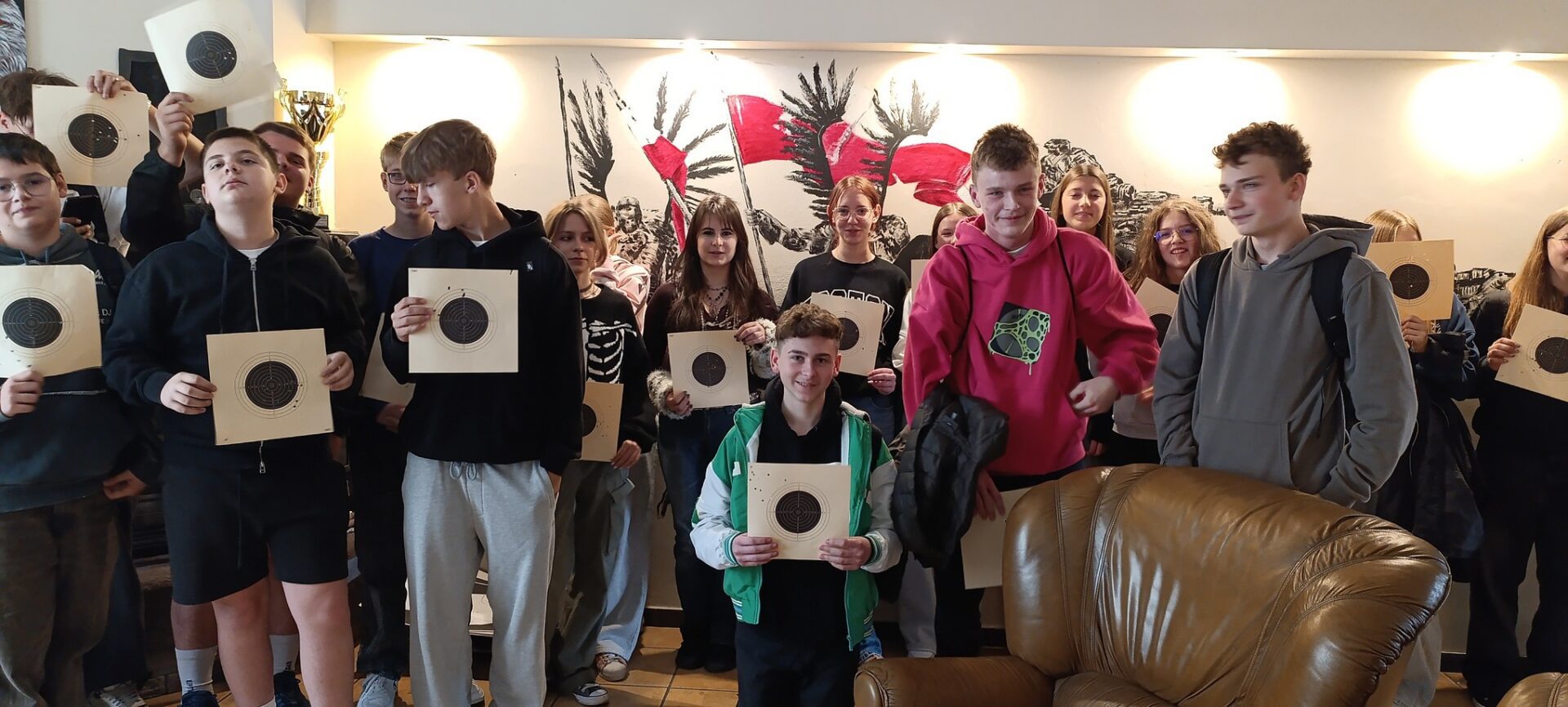 9 czerwca uczniowie klasy VIII B uczestniczyli w zajęciach na strzelnicy w Troszynie. Pod okiem instruktora zdobywali nowe umiejętności. Uczyli się, jak obchodzić się z bronią palną, załadować magazynek i celnie strzelać. Dowiedzieli się, jakie obowiązują zasady bezpieczeństwa podczas przebywania na strzelnicy. Po zajęciach mogli zabrać ze sobą papierowe tarcze, do których strzelali z broni, aby mogli pochwalić się celnością strzałów po powrocie do domu. Niektórym uczniom udało się trafić w sam środek celu. Wyjazd na strzelnicę był dla ósmoklasistów nie tylko ciekawym doświadczeniem, ale również okazją do zdobycia nowej wiedzy, umiejętności i integracji.